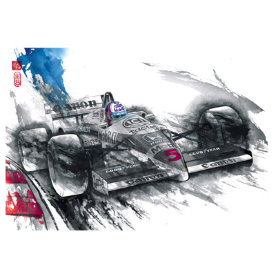 90 年代末頃より墨画の技法を活かしたレーシングカー(主に F1)を描き始める。